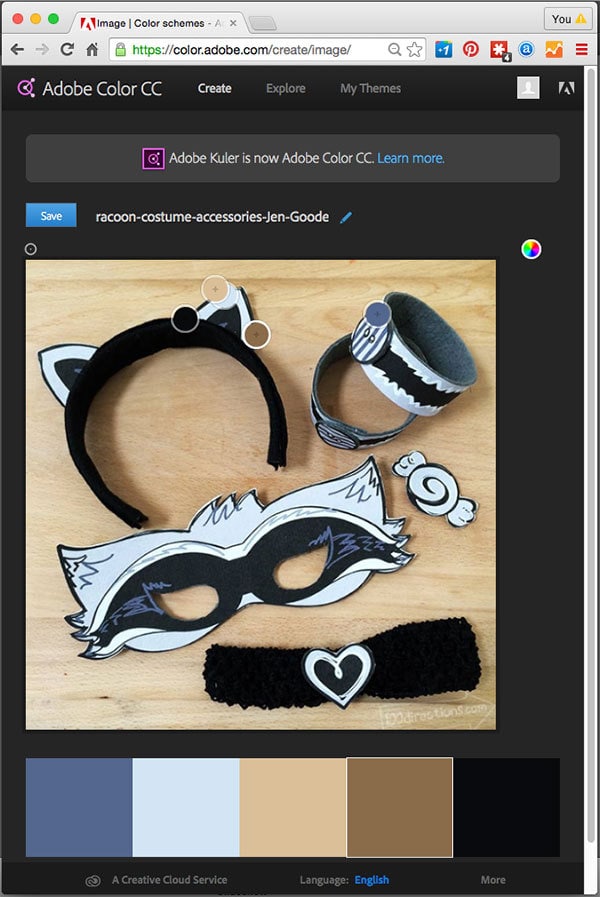 This app collection allows you to create color palettes using a variety of methods. You can choose colors from the color wheel or you can upload a photo and pinpoint specific colors within the image. Online you can upload an image, on the mobile app you have the choice of selecting from your image library or taking a new photo. Once you are finished creating your color palette, you can save the creation to your Creative Cloud account*.