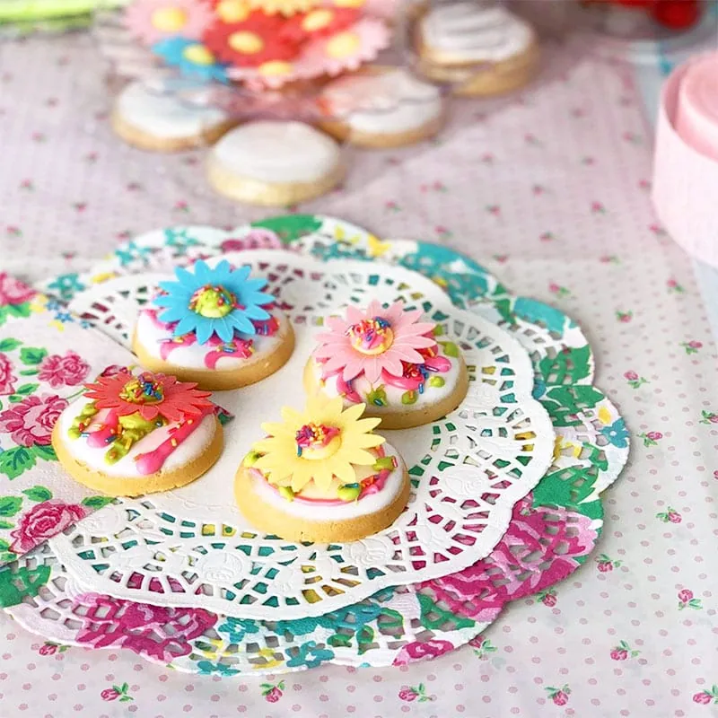 Host a pretty little tea party and decorate your own fancy floral cookies. They're so easy to make!