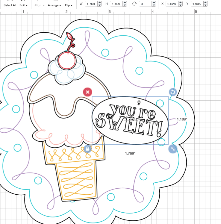 Here's an example. I added “you're sweet” on an oval to be added on top of all the other art.