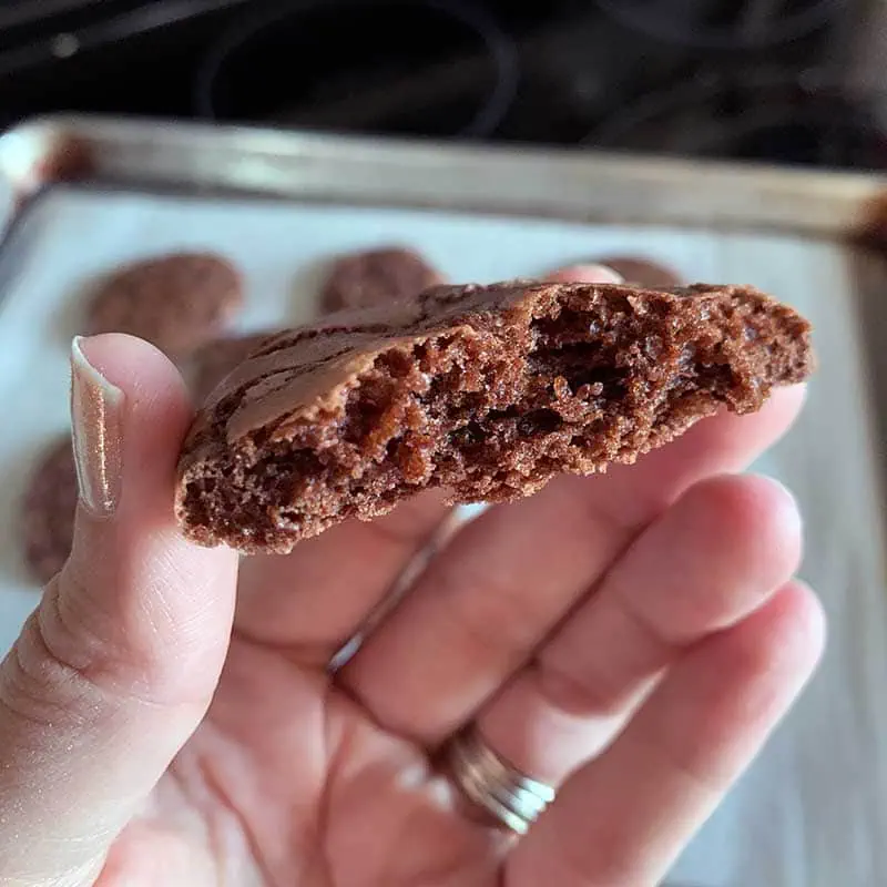 When these cookies are baked just right, they should look like a similar texture to traditional brownies when you break them in half. Don't you want a bite now?