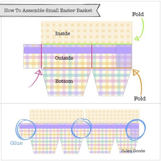 I always have a pile of package fill and fake grass for Easter baskets and buckets. But instead of telling you to go buy your own, I've added a little block of green in the printable that you can make into your own Easter basket grass. Print out the page with the green rectangle, cut into strips, fold or scrunch up the paper strips and then separate to put in your basket.