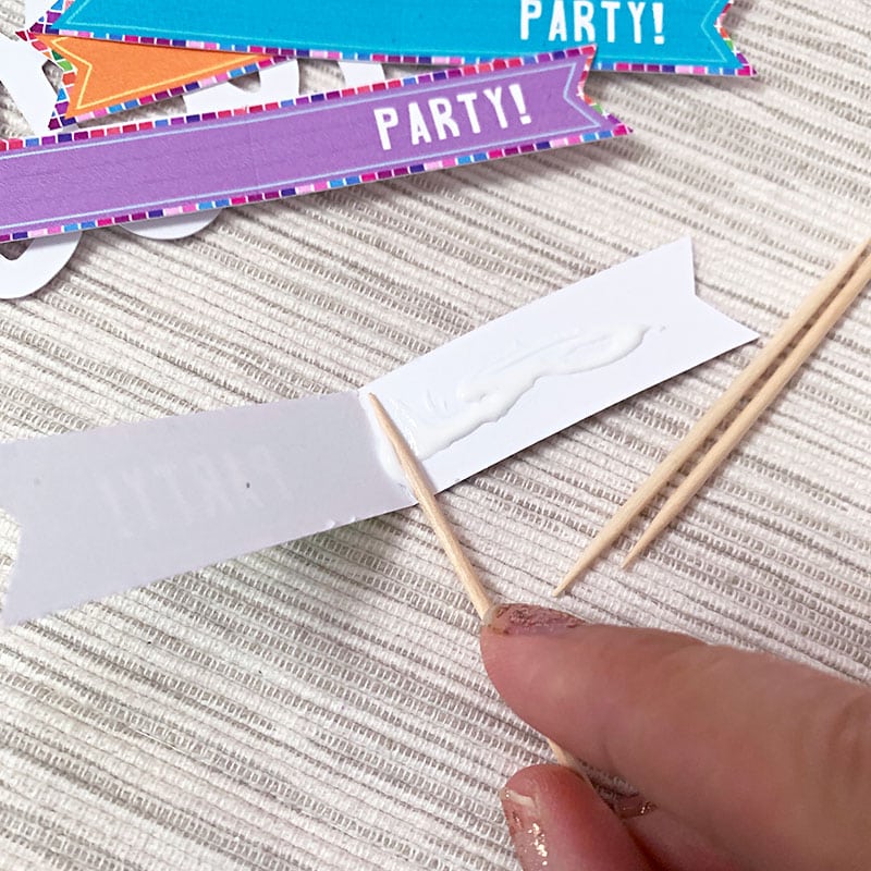 - Once you remove each flag from the mat, fold and glue a toothpick in the middle of the fold.