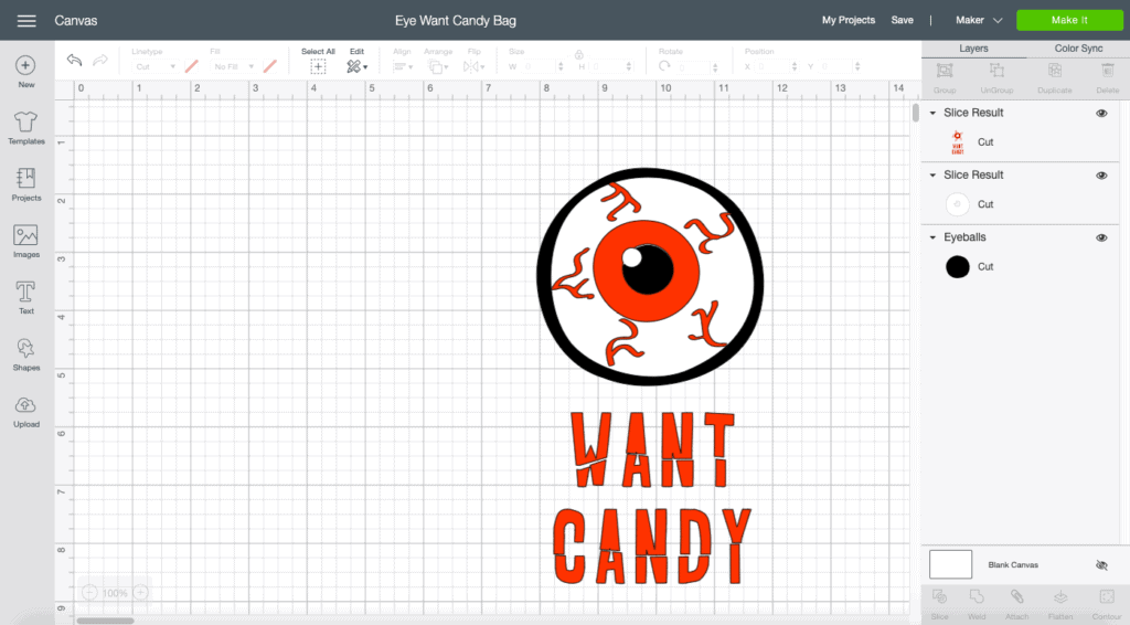 My kids still trick or treat a little bit each year, and they know I will make them a new trick or treat bag every year. Some years they want to be totally involved in making their treat bags, other years they leave it up to me! But, when I saw Jen’s eye designs in Cricut Design Space,I knew they would be the perfect addition to a fun Halloween treat bag.