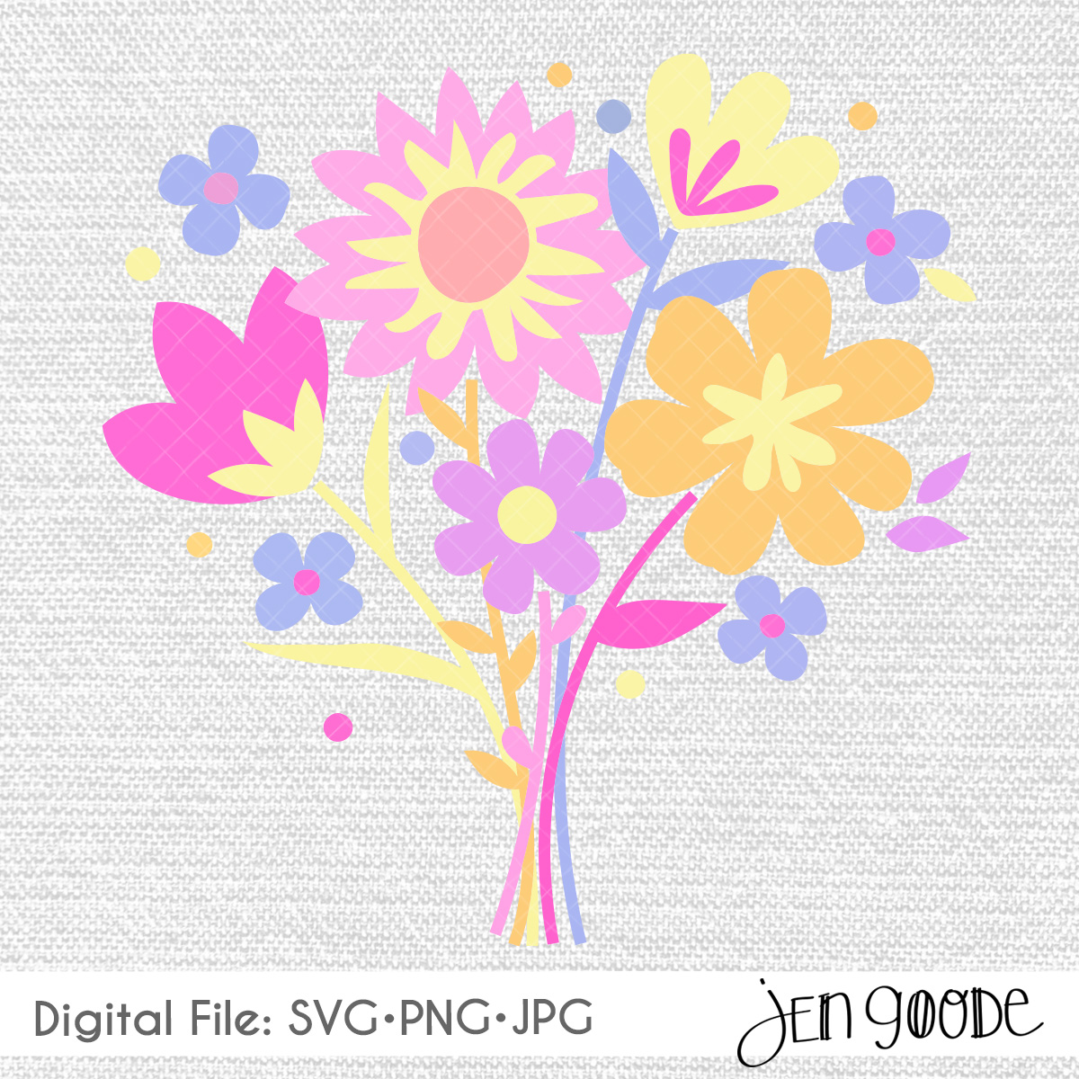 A sweet floral bouquet design that's ready to cut or print. Pick your own colors and materials to make it totally yours. Great for vinyl, HTV, and paper projects.
