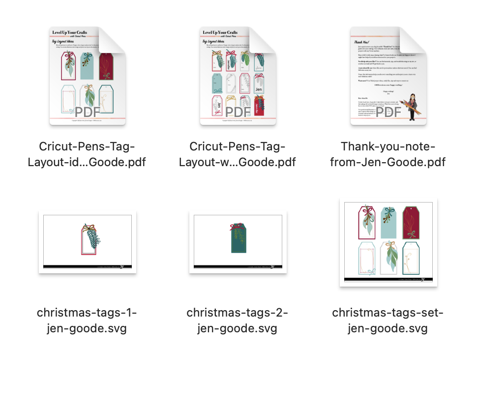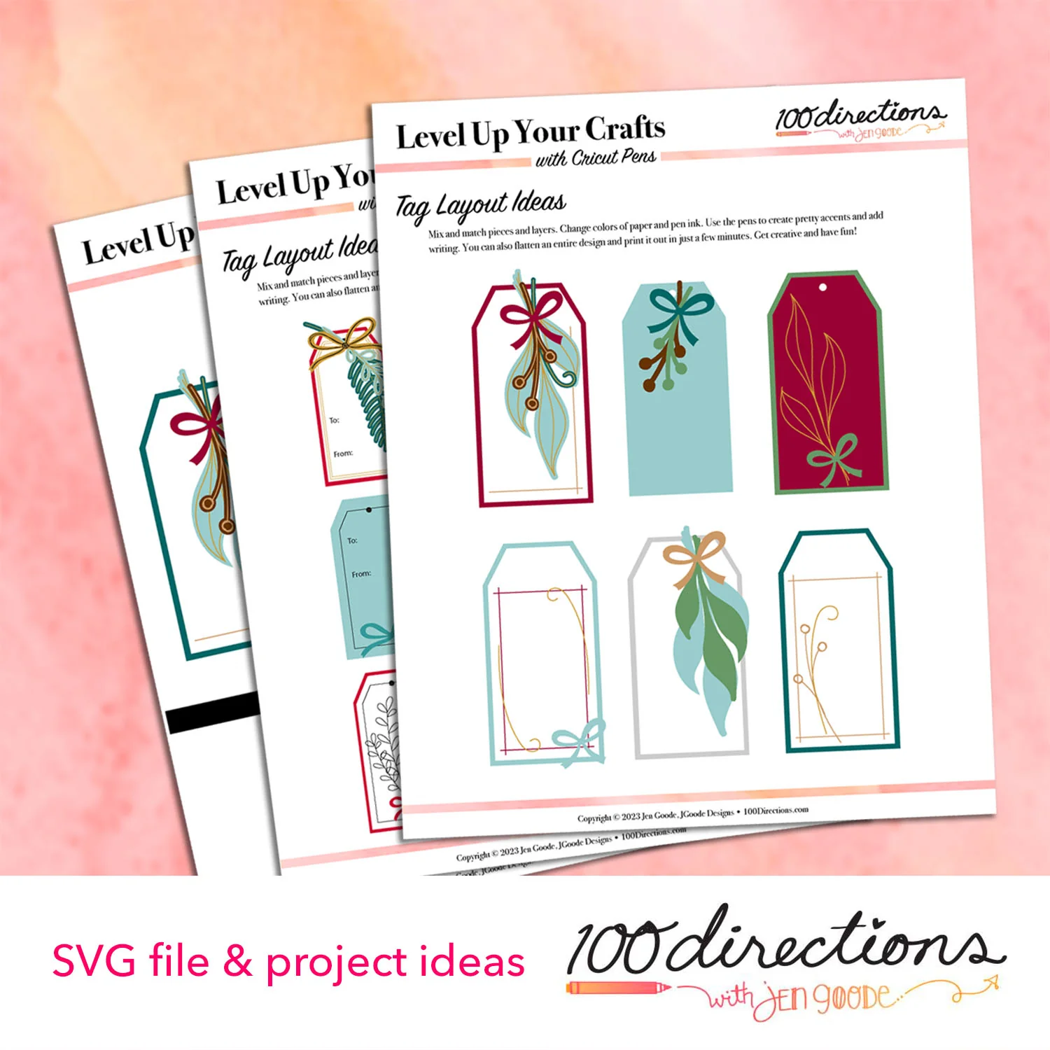 Get 8 layered Christmas gift tag SVG designs across 3 files, perfect for cutting holiday tags with your Cricut and adding hand-lettered details with Cricut pens.