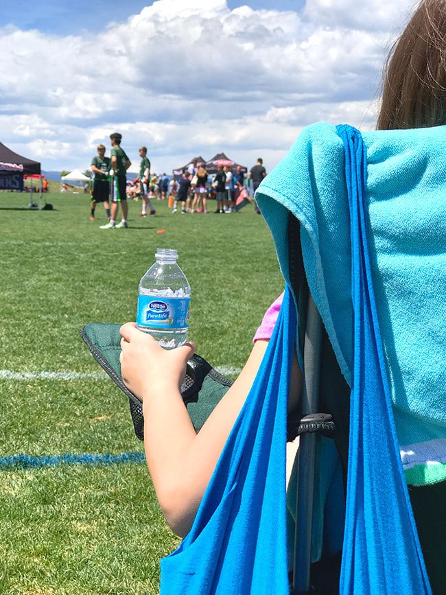 We spend a ton of time outside either playing sports or watching sports. Whether it's summer or winter, staying hydrated helps keep us going. Water is the quickest way to quench that thirst, so we keep it handy all the time. Here are my tips for staying hydrated with a busy, active family: