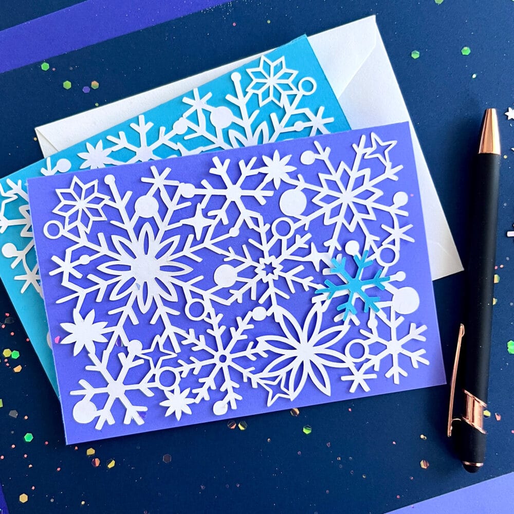 Handmade cards are such a thoughtful way to share winter cheer, and my snowflake background SVG is perfect for adding an elegant touch! The delicate, lace-like design makes it easy to create stunning layered cards that look intricate but are simple to craft with your Cricut. Pair it with bold winter colors, metallic accents, or a heartfelt sentiment to make your cards truly stand out. Whether for the holidays or just to say hello on a chilly day, this snowflake design adds a touch of frosty beauty to every card you create!